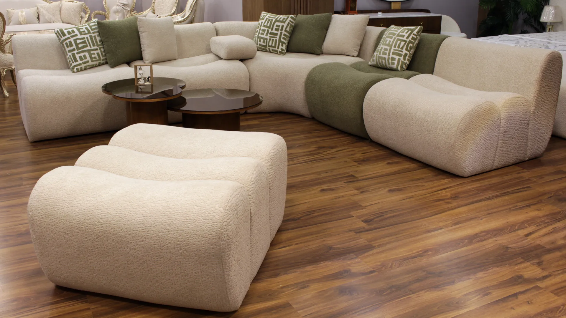 - كنبة مقطعية تتكون من ست قطع منفصلة.