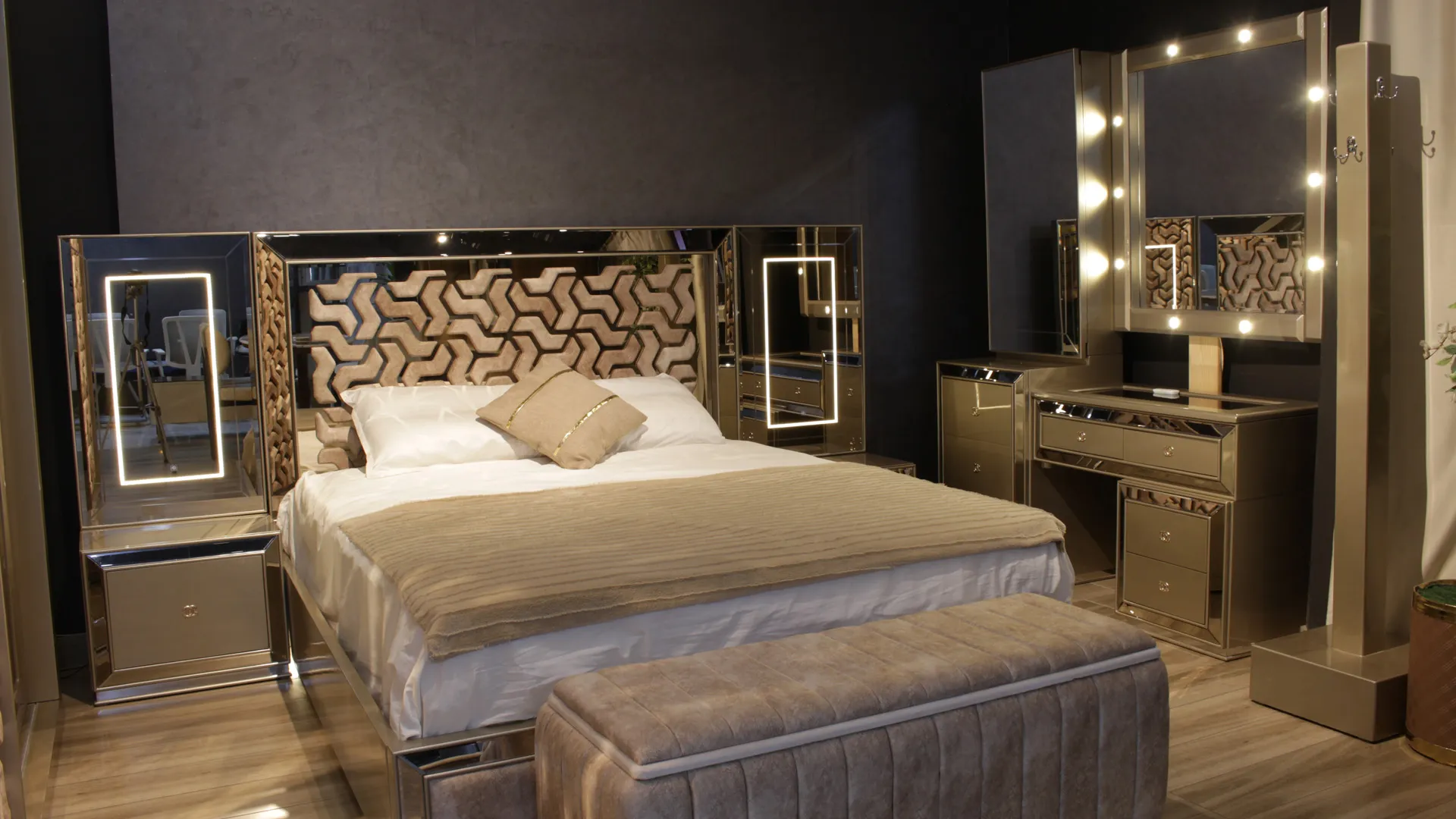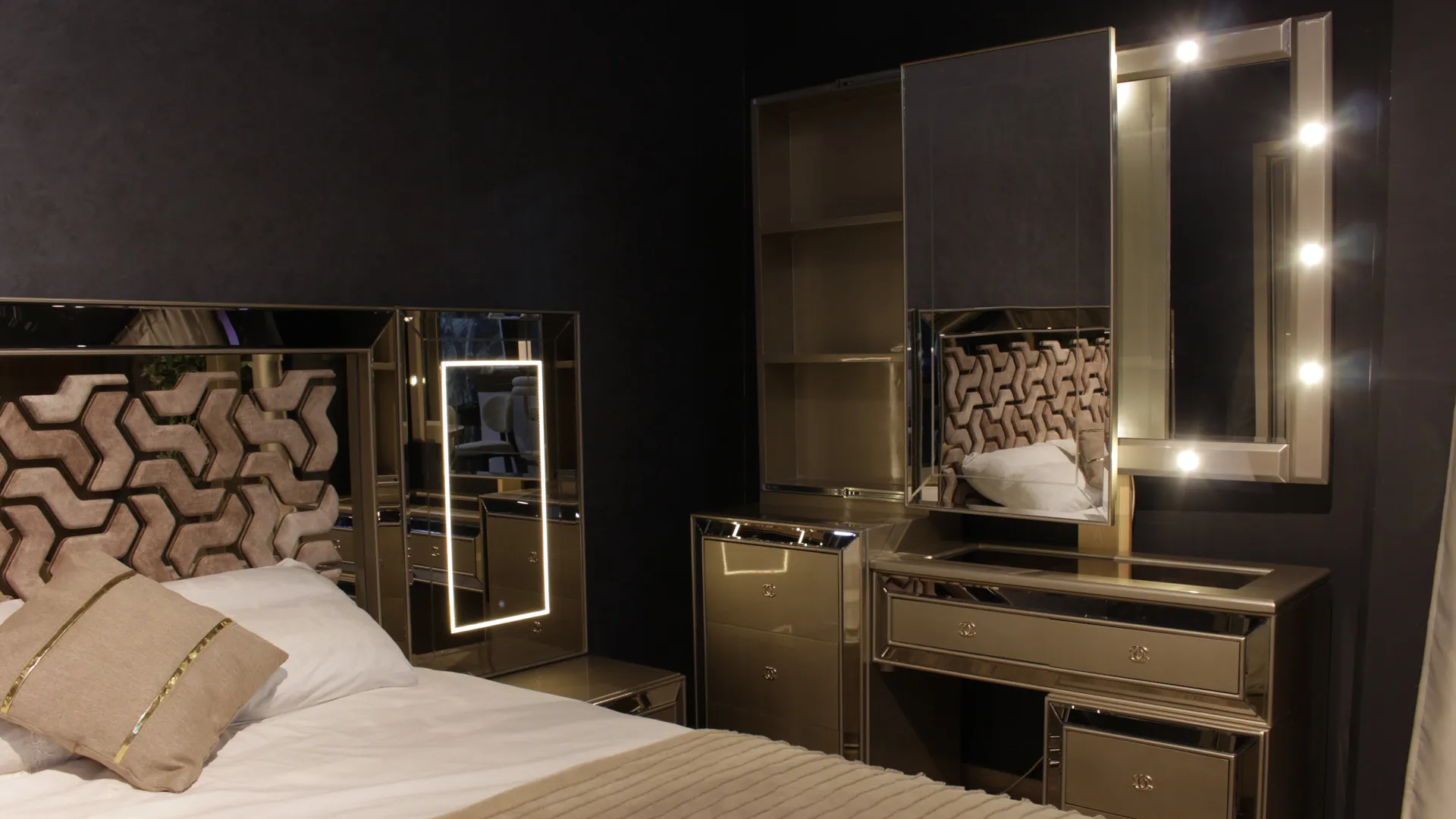 - إضاءة عملية وجميلة في التسريحة وفي ظهر السرير.