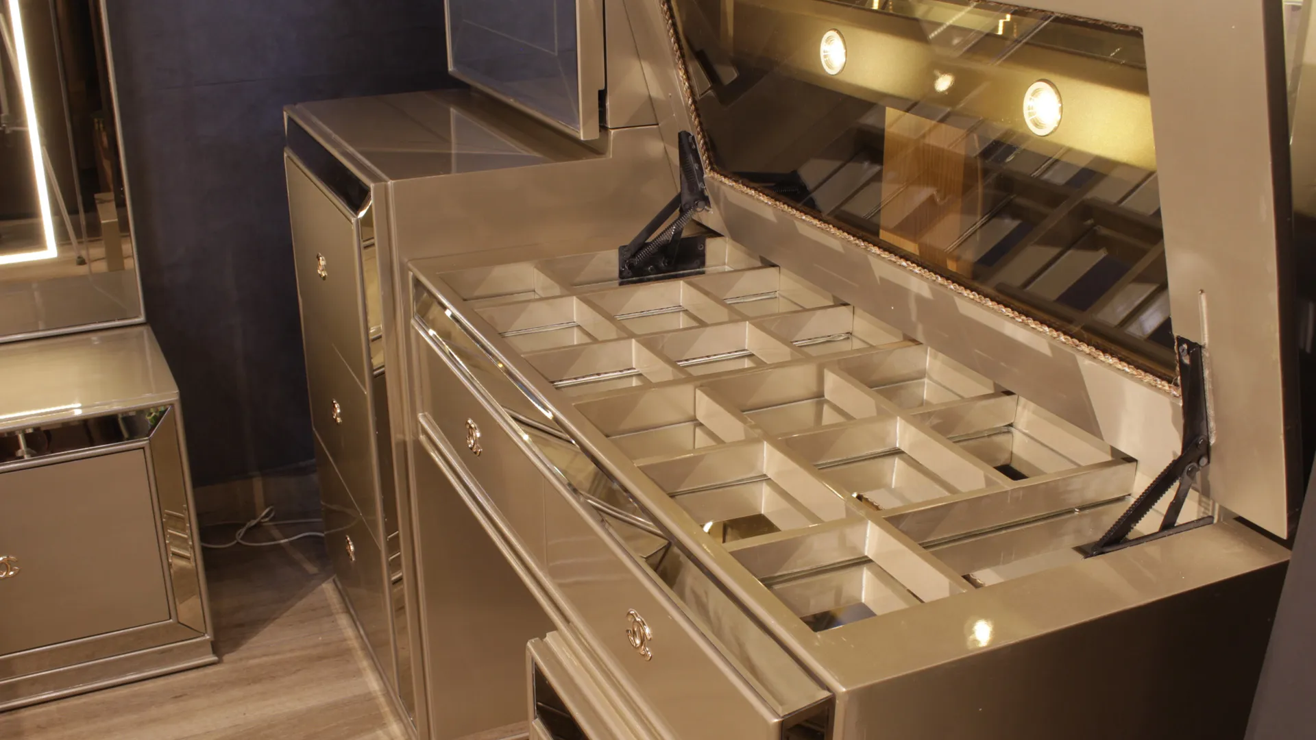 - دولاب جرار مجلد بمرآة كبيرة بارتفاع الدولاب لتحافظي على أناقتك دائما.