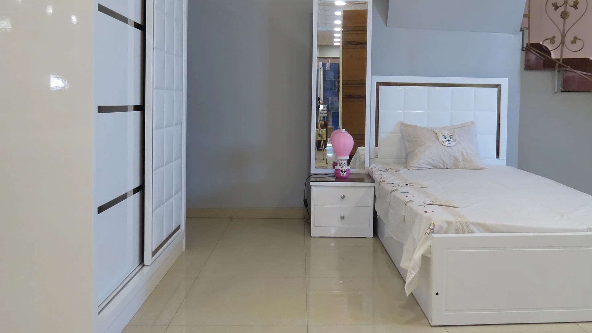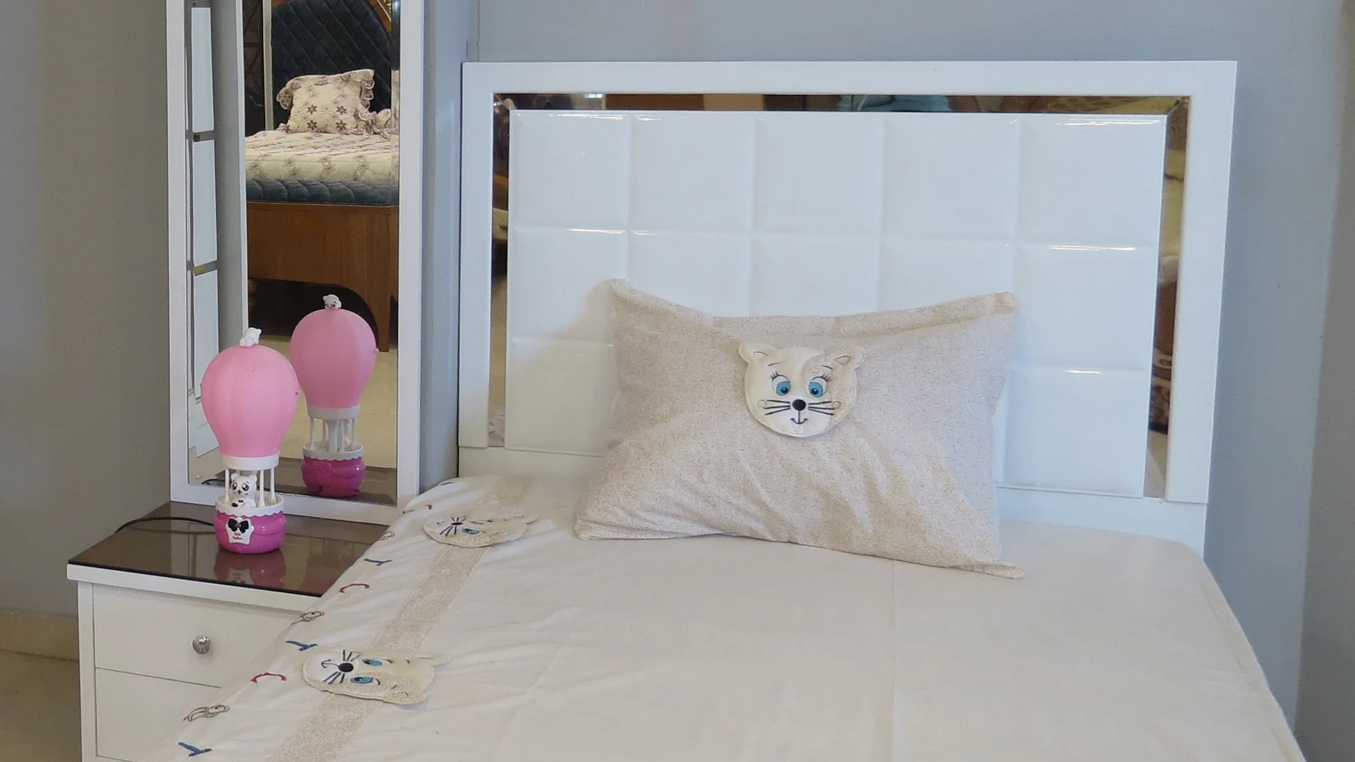 - سريران حجم صغير، كمود بمرآة صغيرة، دولاب صغير جرار.